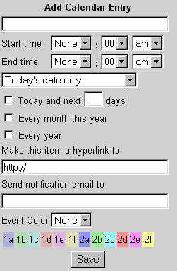 | Of course, to properly utilize the calendar, you will need to be able to add entries to it. This is simply done by using the editing space provided on the daily calendar view (See